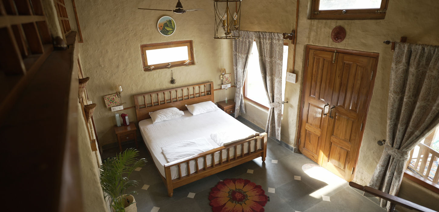 Step into a space that feels like home — where mud walls whisper stories of the past, wooden cots cradle dreams, and every room is wrapped in the warmth of a mother’s care. At My Mom’s Village, our rooms are more than just a place to rest — they’re a return to simplicity, comfort, and heartfelt hospitality.